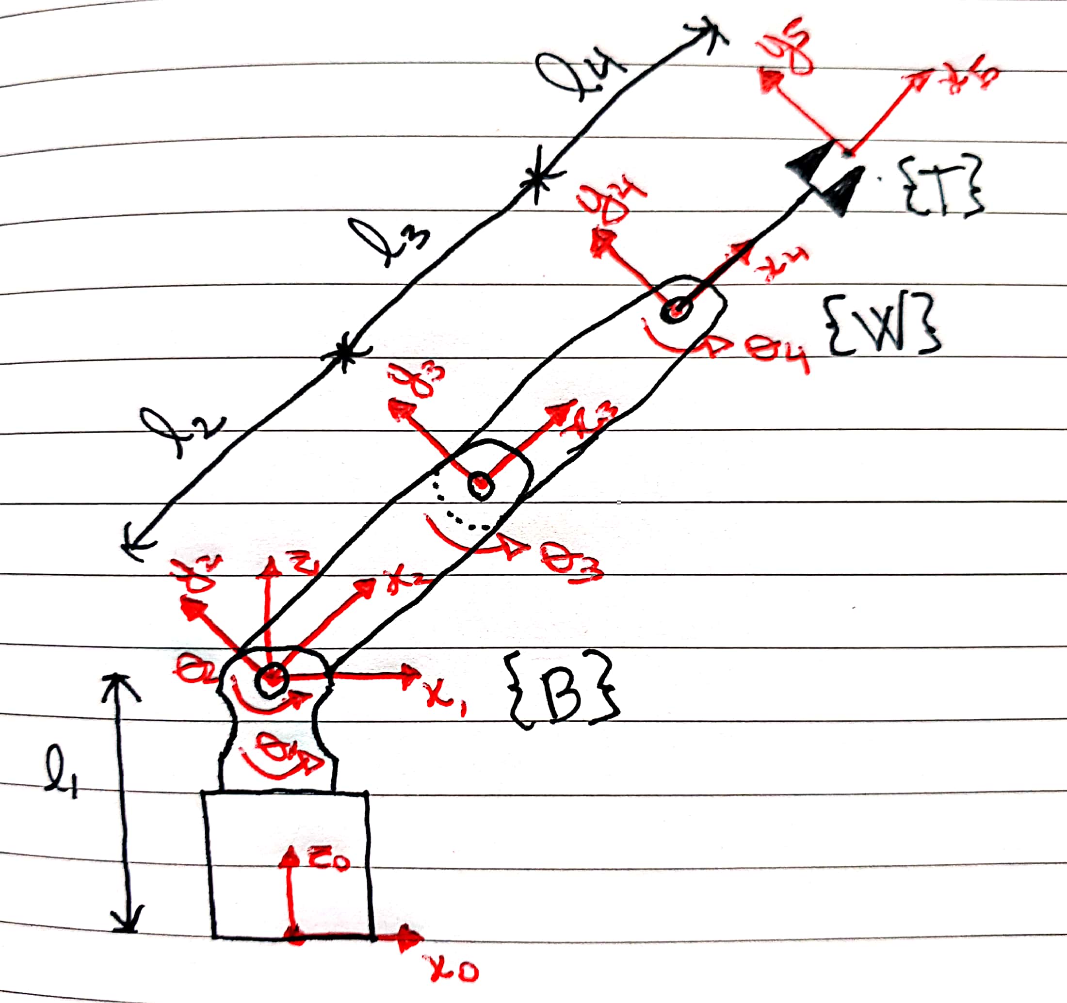 So with the absolute encoders we can track , and and rearrange the links accordingly with the joints angles.