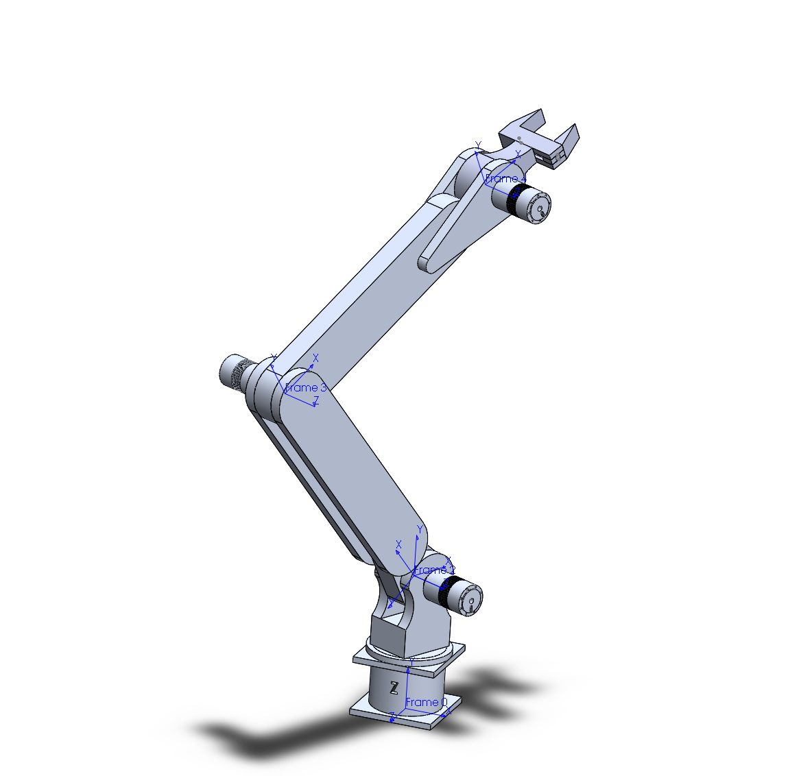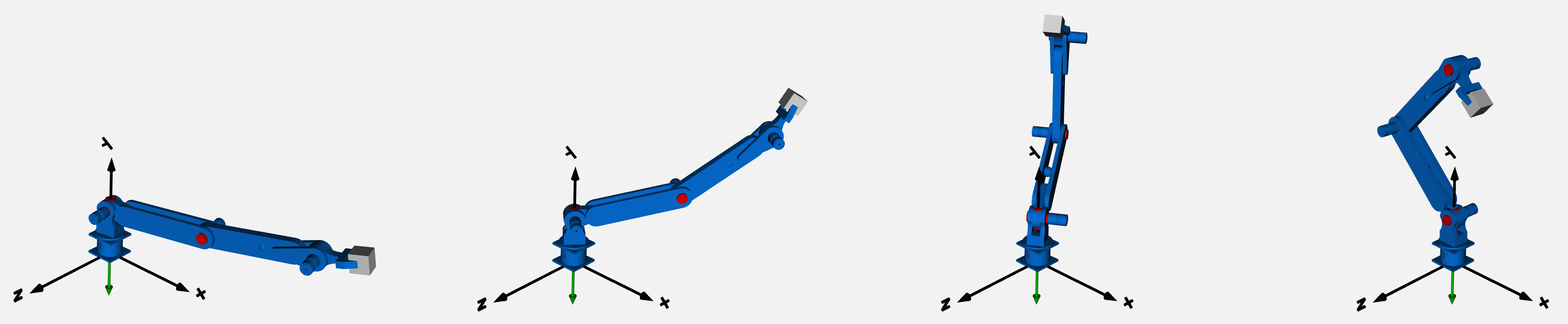 = degrees of freedom of each joint. \end{eqfloat} To control the joints four brushless AC motors are used. The motors have attached a magnetic absolute encoder and a integrated controller. At the end of the system there is a simple gripper making the robotic manipulator able to pickup an object and place it onto a horizontal surface.