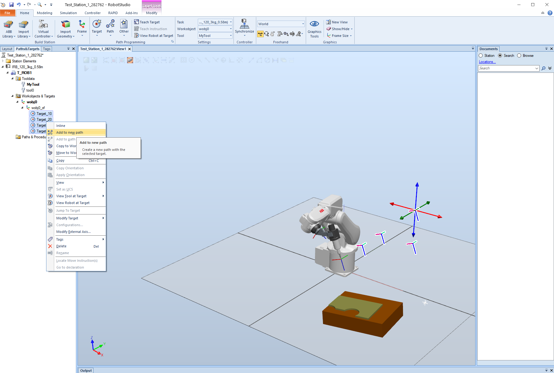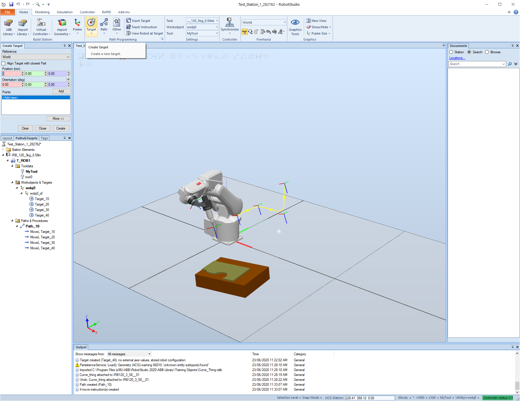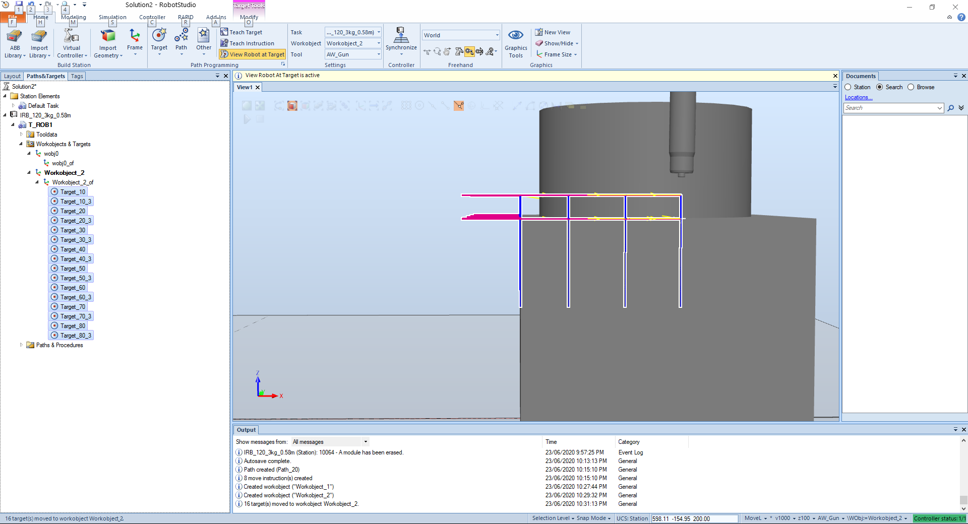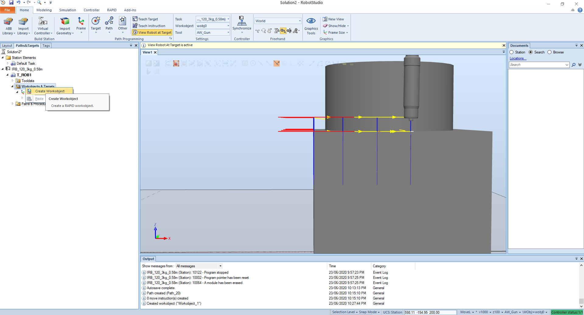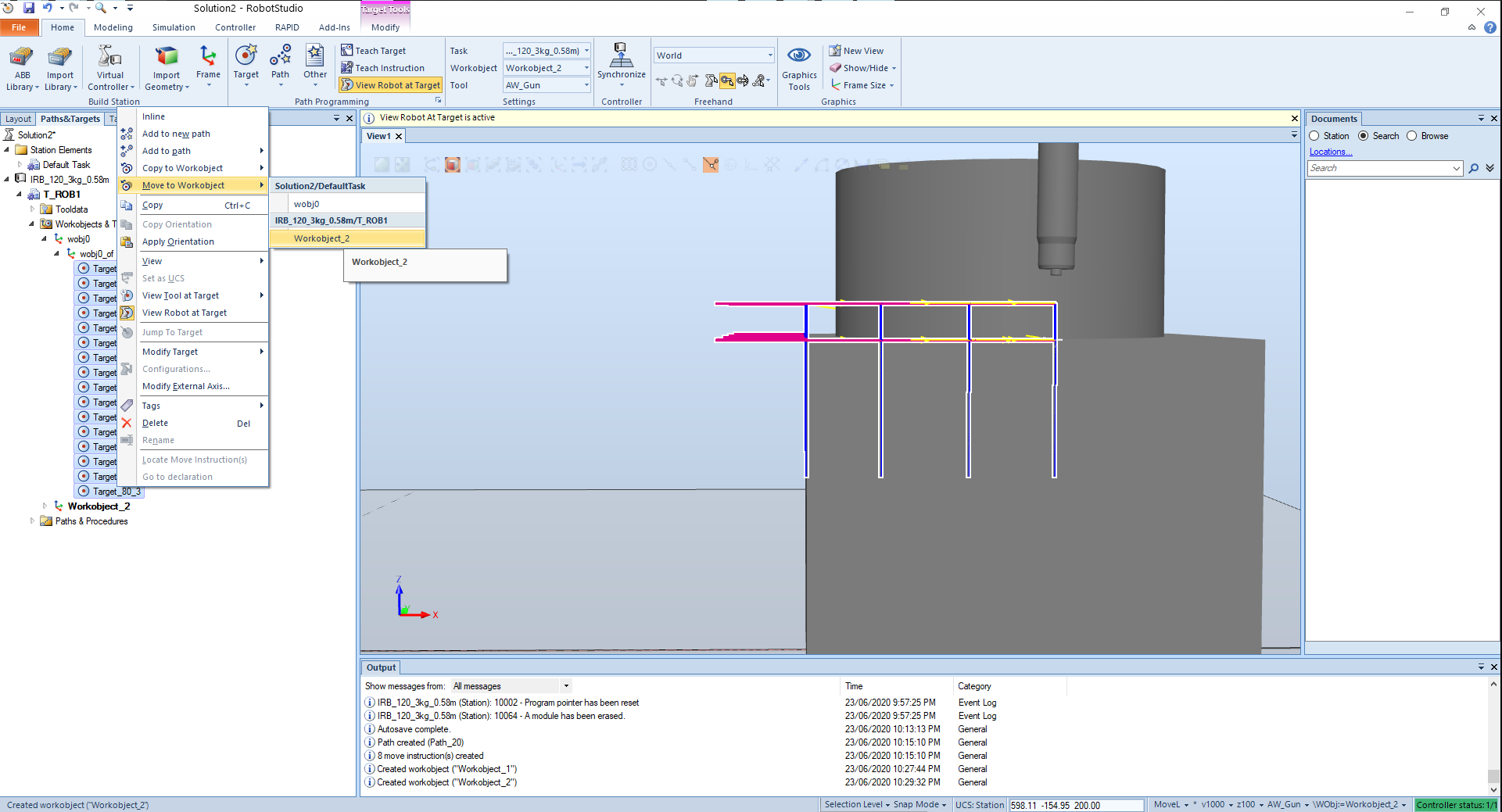The targets will be located at the Paths&Targets panel in the Workobjects & Targets. The Workobject is the space where the robot will be working on.