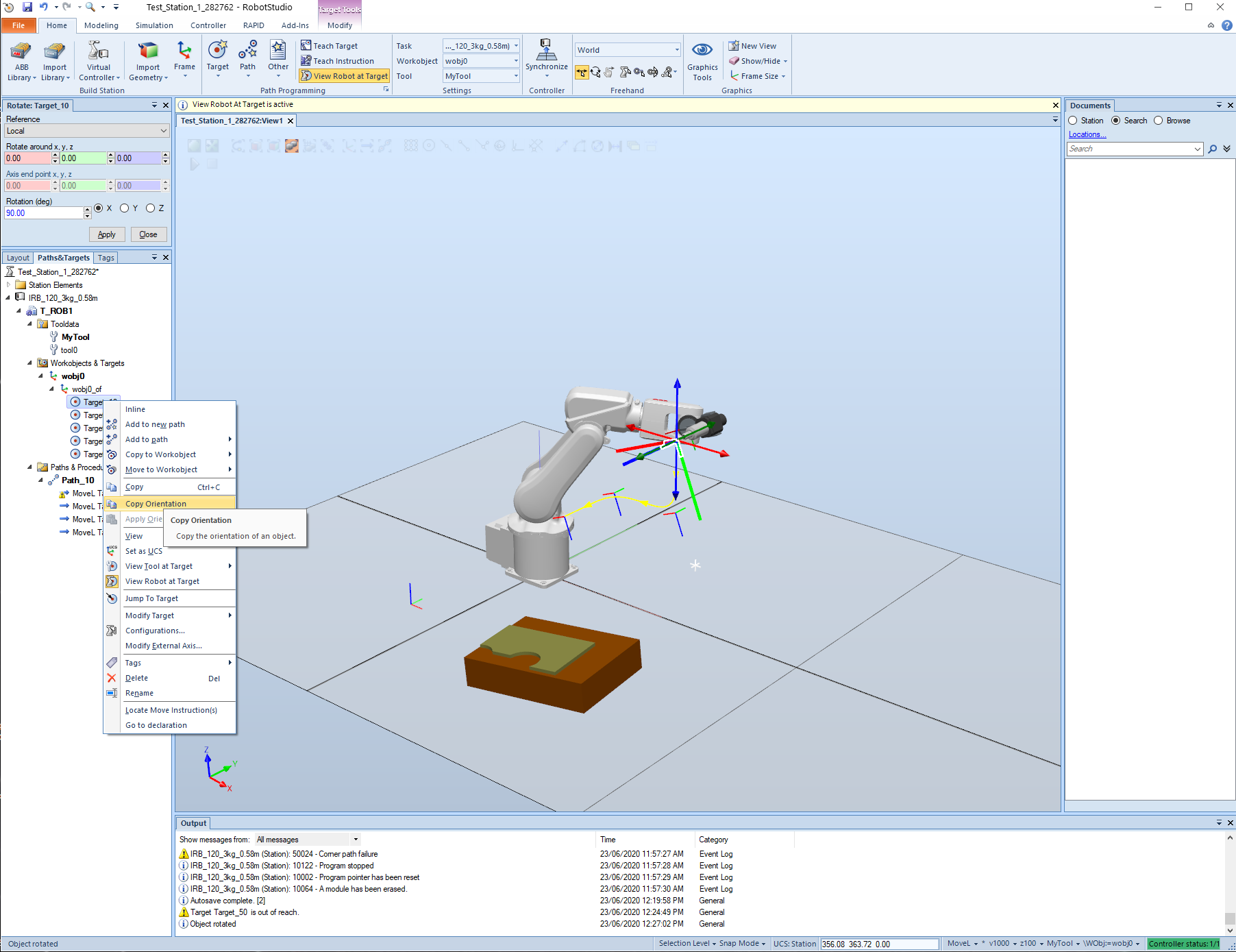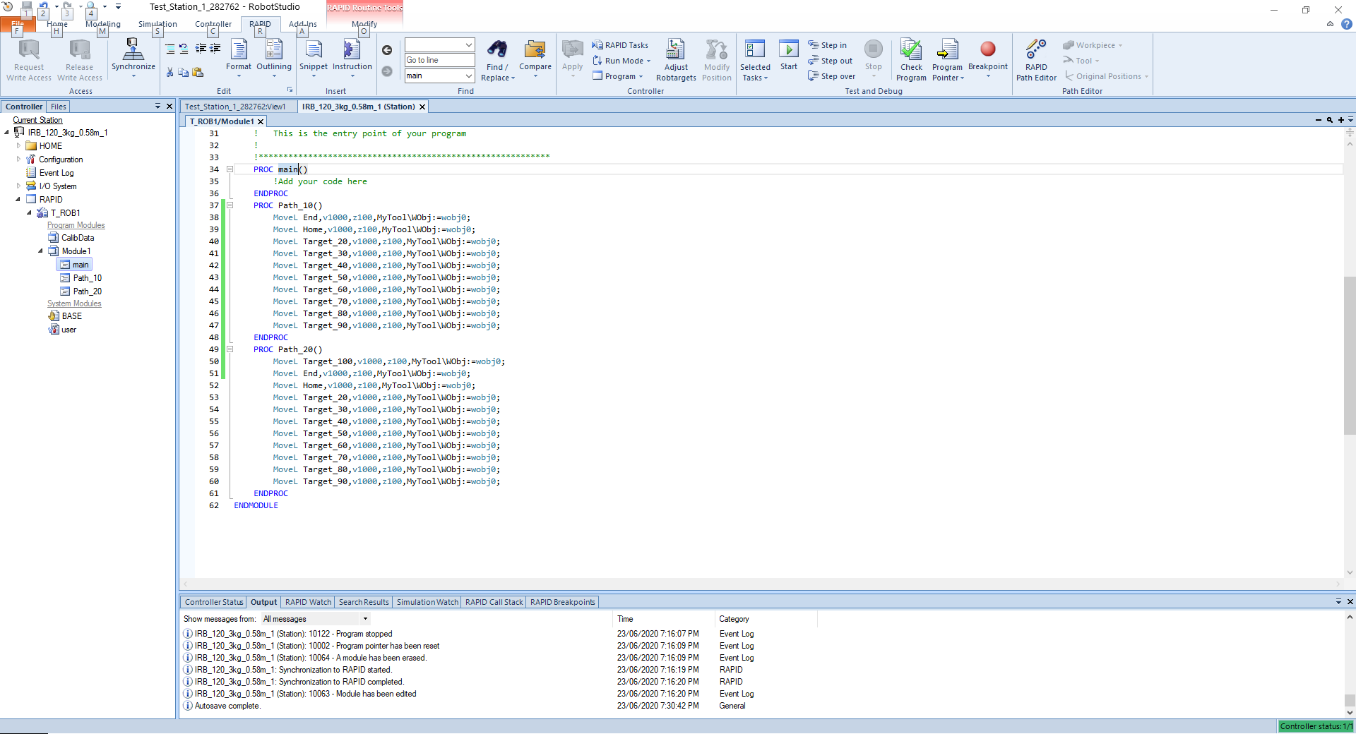 # Assignment 4 - Setup and Simulate the ABB IRB120 in RobotStudio