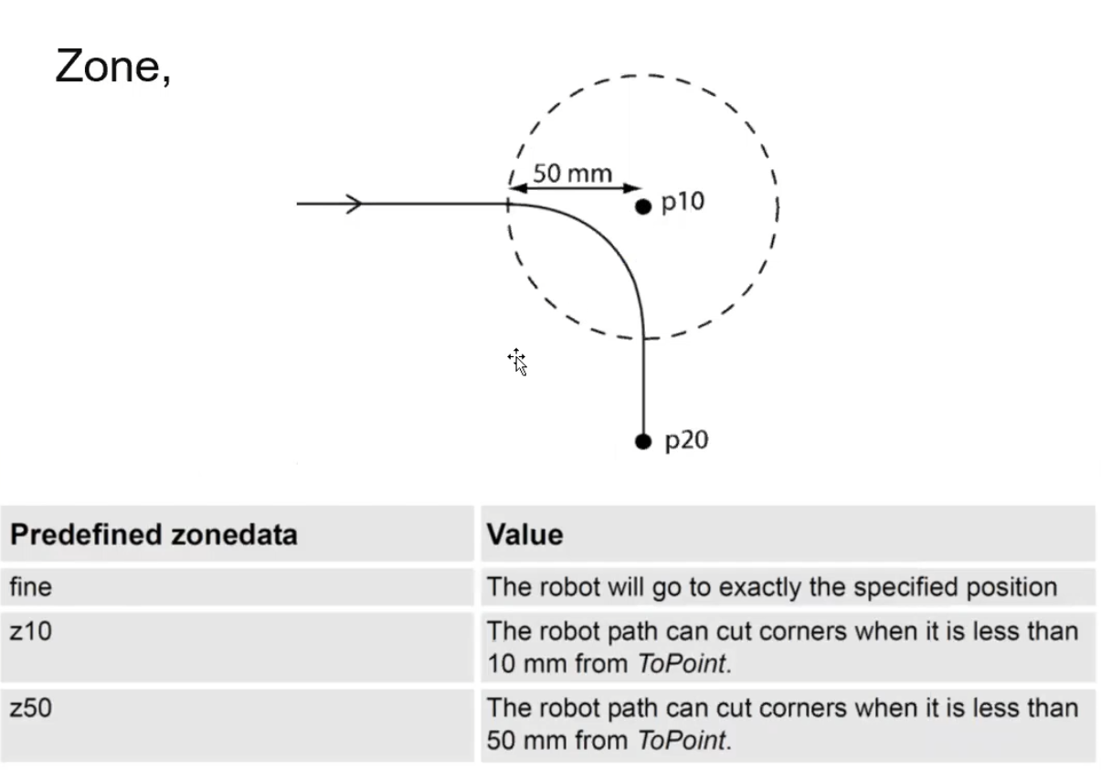 To follow the path closer we can go to edit instruction and edit the characteristics. The Zone Setting is the one responsible for that.