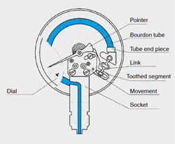 Bourdon tubes are radially formed tubes with an oval cross-section. The pressure of the measuring medium acts on the inside of the tube and produces a motion in the non-clamped end of the tube. This motion is the measure of the pressure and is indicated via the movement.