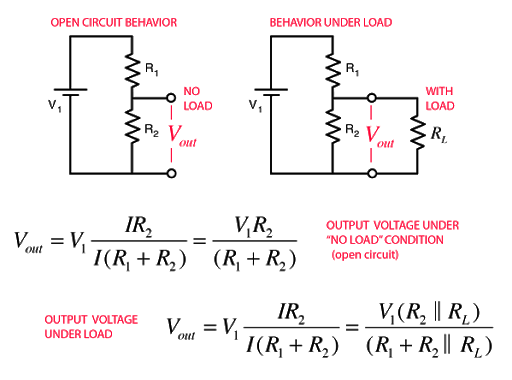 The output can be considered to be taken from across a potential divider circuit consisting of in series with . The voltage is then the fraction 2 of the output voltage, i.e.